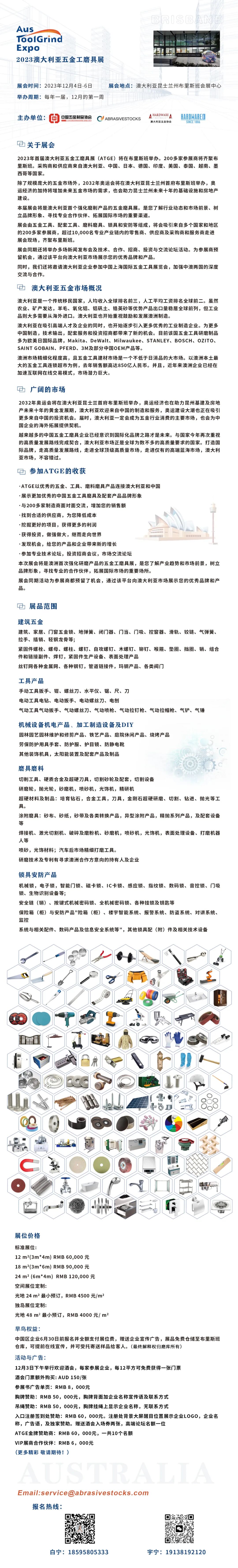 中国五金制品协会拟与澳大利亚五金协会、澳大利亚磨库于2023年12月初在澳大利亚布里斯班共同主办“2023澳大利亚五金/工磨具展"(ATGE)。